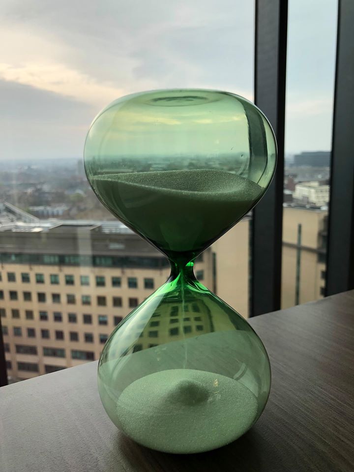 Lately, I’ve been experimenting with using an hourglass to time blocks of work in 30 minute increments. When it runs out, I take a five minute break and then jump back in.